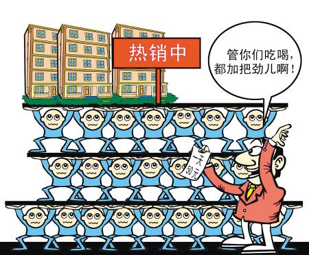 在北京市朝陽區(qū)東八里莊的一個(gè)居委會(huì)里,張大媽近日又開始忙起來了,同往年一樣,她又接受了東四環(huán)幾個(gè)待銷樓盤的邀約,組織一批老年人到幾個(gè)售樓中心“簽約”,一天管吃喝還凈掙50元。據(jù)介紹,他們有時(shí)還要到國貿(mào)春季房展會(huì)上演“訂房”,前臺(tái)簽單,后臺(tái)拿錢走人。(4月6日《人民日報(bào)》)