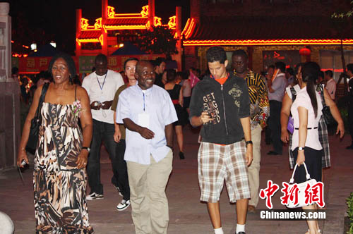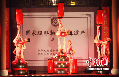18日晚間,外賓們在鹽城水街參加游園活動,國家非物質(zhì)文化遺產(chǎn)淮劇和雜技給外國朋友們奉上了一臺具有鹽城地方文化特色的視覺饕餮盛宴。鹽城市雜技團的雜技《綻放的蓓蕾》和《轉動的彩虹》美輪美奐,體現(xiàn)了鹽城雜技的特色和文化藝術,驚險而又漂亮的動作贏得了觀眾們不時的喝彩。江蘇省淮劇團的淮劇表演可謂是文武全套。國家一級演員黃萍和薛建華的文戲《預備員》選段,向外賓展示了淮劇韻味十足的唱腔和優(yōu)美的身段。而展示武戲《將軍令》的表演者皆是16歲左右的淮劇新生代學生,他們基本功扎實的武戲表演惹得臺下觀眾叫好聲不斷。