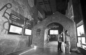 安哥拉館注重用多種元素表達土著文化,比如館內(nèi)墻上有反映土著人生活場景的巖畫。在安哥拉,巖畫是當?shù)厝讼猜剺芬姷乃囆g(shù)門類,遍布安哥拉從北到南40多個地區(qū),內(nèi)容以動物、人物及各種場景圖案為主。