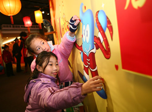 今年除夕和大年初一,上海世博會(huì)展示中心照常開放!昂毤暗谒图椋鹋6稊\迎新春”,為和觀眾一起高高興興過(guò)新年,上海世博會(huì)展示中心為觀眾特別安排了豐富多彩的 新年活動(dòng)套餐,有“海寶吉祥傳播”、“粘貼世博中國(guó)心”、“世博燈謎有獎(jiǎng)大家猜”、“幸運(yùn)魔方大玩轉(zhuǎn)”等。