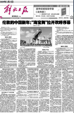 “當(dāng)時(shí)從謝斯百瑞大街到廣場(chǎng)滿是人,從中午12點(diǎn)到下午5點(diǎn)結(jié)束,統(tǒng)計(jì)數(shù)字是10萬(wàn)人次。2004年到2005年也是10萬(wàn)多人次,2006年和2007年超過20萬(wàn)人次,到2008年達(dá)到30萬(wàn)人次,今年又比去年增加5萬(wàn)多。有意思的是,觀眾90%是倫敦本地市民和歐洲游客。” 鄧柱廷翻開筆記本對(duì)記者介紹。