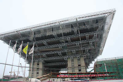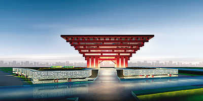 中國國家館以“東方之冠”為構(gòu)思主題,取自中國古代木結(jié)構(gòu)建筑中的元素——斗拱。16字設(shè)計理念體現(xiàn)了中國文化的深厚積淀:“東方之冠,鼎盛中華,天下糧倉,富庶百姓”。主色調(diào)運用傳統(tǒng)、沉穩(wěn)的“故宮紅”。世博會期間,中國館將展現(xiàn)一幅宏偉的城市文明圖。