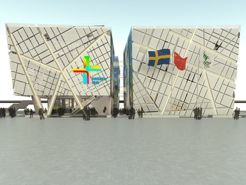 瑞典館是首個奠基的北歐國家館,占地3000平方米。建筑根據(jù)瑞典式可持續(xù)性理念,進(jìn)行可循環(huán)利用設(shè)計(jì)。參觀者可以在鏈接瑞典館內(nèi)部的十字形立體通道內(nèi)穿梭往返,這個特別的通道從建筑的整體上象征著城市與鄉(xiāng)村的和諧互動。