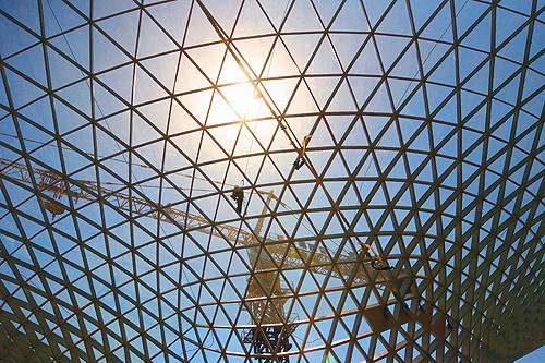 提到地下空間,大多給人的印象是昏暗與沉悶,然而世博軸的“陽光谷”使這一問題迎刃而解。據(jù)介紹,世博軸采用全新的建筑形式,6個巨型圓錐狀“陽光谷”將陽光自然引入地下,既利于空氣質(zhì)量的提高,又能節(jié)省人工照明帶來的能源消耗,為安檢排隊(duì)等候人流提供足夠舒適的空間。