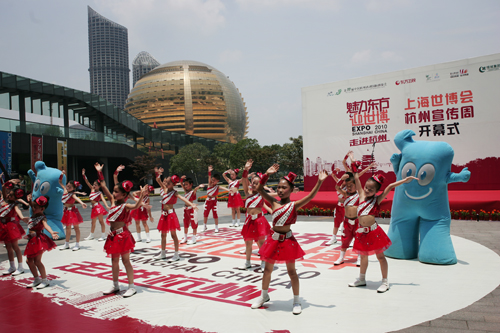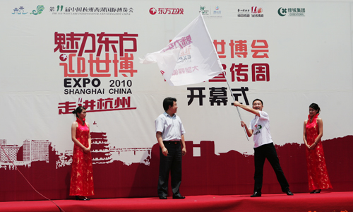 6月20日,繼杭州推廣周在上海世博會(huì)展示中心精彩亮相之后,滬杭兩地今天再掀宣傳高潮。上午11點(diǎn)10分,上海世博會(huì)杭州宣傳周開(kāi)幕式暨《魅力東方迎世博——走進(jìn)杭州》直播活動(dòng)在錢(qián)江新城城市陽(yáng)臺(tái)舉行。本次宣傳周以“精彩世博•品質(zhì)杭州”為主題,展示了上海世博會(huì)的最新籌辦進(jìn)展和杭州積極參與世博會(huì)的亮點(diǎn)。