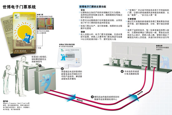 ●上海世博會(huì)會(huì)期半年,預(yù)計(jì)可吸引全世界7000萬人次的參觀者,其票務(wù)系統(tǒng)被稱為有史以來最大規(guī)模的電子標(biāo)簽門票應(yīng)用案例。