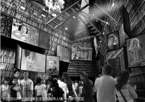 進(jìn)入家庭展區(qū)后,觀眾滿眼都將是這些家庭成員的影像,這些影像由投影機(jī)投射到許多鏡子上,再互相反射,呈現(xiàn)“無(wú)處不在”的感覺(jué)。在工作展區(qū),一個(gè)屏幕可以自動(dòng)旋轉(zhuǎn),用來(lái)表現(xiàn)六個(gè)家庭的不同工作情況。在交往展區(qū),則把六個(gè)家庭的社會(huì)交往情況投射到天幕上。展區(qū)屋頂上垂下一條條桿子,觀眾觸摸一條桿子,相應(yīng)一條某處的桿子就會(huì)發(fā)亮,顯示人們之間交往的感覺(jué)。在學(xué)習(xí)展區(qū),將模擬一個(gè)很大的書(shū)柜,展區(qū)空間會(huì)變色,顯示從早到晚的變化。在健康展區(qū),屏幕上將表現(xiàn)各個(gè)家庭怎樣從事醫(yī)療、如何維護(hù)健康等。展覽結(jié)尾處是六個(gè)家庭在屏幕上和大家揮手說(shuō)再見(jiàn)。