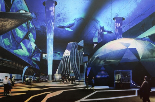 上海世博會主題館——未來館分為“昨日之夢”、“理想與實(shí)踐”、“多種可能性”、“夢想正在實(shí)現(xiàn)”四個部分。展館從“昨日之夢”開始重溫人類的實(shí)踐過程,運(yùn)用影片、書籍和雕塑等方式展示從古至今人們對未來城市的幻想、設(shè)計(jì)與實(shí)踐,并向參觀者展現(xiàn)當(dāng)今的實(shí)踐成果和未來城市是建立在今日挑戰(zhàn)基礎(chǔ)上的理念。