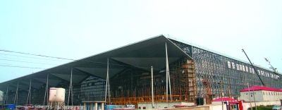 據(jù)工程人員介紹,這里的一號展廳是城市人館,長180米、寬108米,總面積約2萬平方米;二號展廳與三號展廳隔而不斷,分別是城市生命館和城市星球館,總長180米、總寬126米、凈高14-21米,面積超過2.4萬平方米,大得可以放進(jìn)4架大型客機,即使是一個標(biāo)準(zhǔn)足球場放進(jìn)去也綽綽有余。