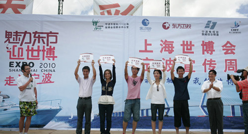 11日上午,“魅力東方迎世博--走進(jìn)寧波”大型直播活動(dòng)在象山松蘭山海灘舉行。直播活動(dòng)全面報(bào)道了寧波市迎接2010年上海世博會(huì)的情況,各類主題剪紙表演、專家訪談、小朋友百米兒童畫、沙灘趣味運(yùn)動(dòng)會(huì)、手語表演、民俗演出等活動(dòng),讓夏日的海灘活力十足。上海世博局國內(nèi)參展顧問黃耀誠現(xiàn)場(chǎng)向5位幸運(yùn)市民頒發(fā)了世博請(qǐng)柬,送出了來年之約。