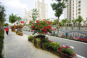 這條道路不僅通行順暢,景觀也很別致:除人行道上的道旁樹(shù)之外,沿線小區(qū)開(kāi)墻透綠,小區(qū)內(nèi)外綠化連成一片。馬路上原先的空地也“見(jiàn)縫插綠”,馬路與非機(jī)動(dòng)車道之間的隔離帶也種了樹(shù)。一些市民表示,待今后樹(shù)木長(zhǎng)大,這條路將成綠蔭大道。