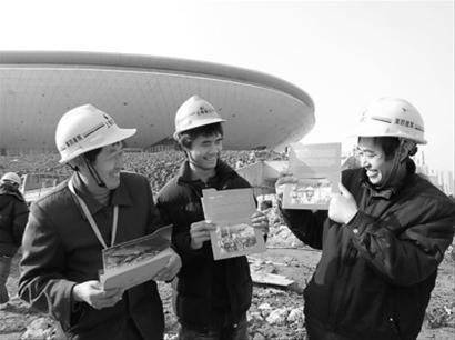昨起,志愿者們分批把紀(jì)念冊(cè)送到建設(shè)者手中!拔覀兺宓睦相l(xiāng)都拿到了世博紀(jì)念冊(cè)。你們看,小徐這張照得還蠻年輕的呢!”47歲的林葉剛指著工地清潔工徐德宣調(diào)侃地說。拿到貼有自己照片的世博紀(jì)念冊(cè),世博建設(shè)者們笑聲一片。