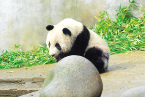 據(jù)介紹,“閩閩”出生于2008年9月3日晚,雌性,出生時(shí)體重102.8克,來上海時(shí)已長(zhǎng)到35公斤。“閩閩”的媽媽叫“竹韻”,第一次做母親就產(chǎn)下了雙胞胎,“閩閩”是其中的妹妹。她尖嘴、臉較圓,最喜歡和人玩耍,經(jīng)常爬在鐵欄上“深情”呼喚飼養(yǎng)員,是個(gè)典型的人來瘋。