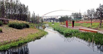 經(jīng)過三年研究,城市濕地生態(tài)系統(tǒng)方案問世了。 2008年,張教授帶領團隊進入園內(nèi)施工,在多家單位協(xié)作配合下,把圖紙上的構想變成了現(xiàn)實中的草木叢生、鳶飛魚躍。