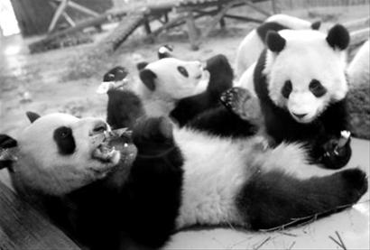 早春時節(jié),野外大熊貓正在盡情享用美味春筍。上海動物園里10只遠(yuǎn)道而來的 “世博熊貓”也開始執(zhí)行春季新食譜,每天加餐時令春筍,吃更多竹葉,同時漸漸降低奶制品濃度。