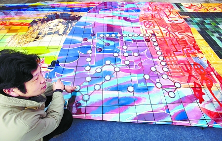 3月29日上午,在三彩藝窯廠,記者看到,工作人員正在對一塊塊壁畫進行最后的清掃、粘貼。郭愛和介紹,這幅壁畫長26米、高3.2米,整幅壁畫緊扣世博會中國河南館“中國之中,城市之源,文明之根,中原崛起”的主題,用洛陽三彩作為畫面主體背景色調(diào),將河南的歷史和未來通過白描、寫意、油畫等各種畫種體現(xiàn)出來,是“城市,讓生活更美好”這一世博會主題的最好體現(xiàn)。