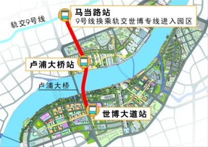 軌道交通世博專(zhuān)用線將在3站兩區(qū)間內(nèi)運(yùn)行,承擔(dān)入園、離園和園區(qū)內(nèi)的越江交通。世博專(zhuān)用線3站兩區(qū)間的長(zhǎng)度為3.2公里,3個(gè)站點(diǎn)分別為內(nèi)外交通轉(zhuǎn)換的馬當(dāng)路站、浦西園區(qū)的盧浦大橋站、浦東園區(qū)的世博大道站。世博專(zhuān)用線配置6節(jié)編組列車(chē)4列,運(yùn)營(yíng)2列,備用2列,運(yùn)營(yíng)時(shí)間為9:00—24:00。另外在開(kāi)園前與閉園后分別提供兩個(gè)班次的工作人員通勤交通。