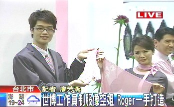中新網(wǎng)4月15日電 據(jù)臺灣TVBS報道,上海世博會臺北館將于4月20日試營運,臺北市府15日特別對外召開記者會,讓臺北館工作人員的制服亮相,而幕后設(shè)計推手是知名造型大師Roger,他也現(xiàn)身說明設(shè)計理念。