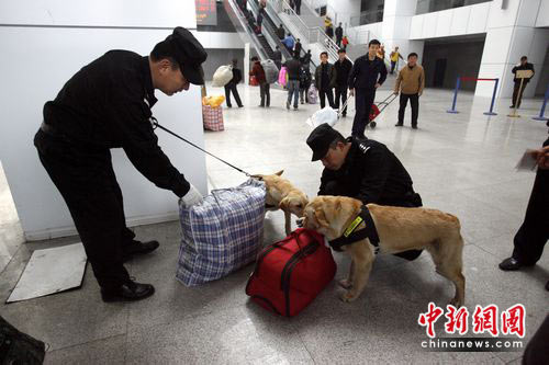 上午10時(shí)左右,記者在徐州火車站候車大廳看到,1歲左右的警犬“邁克”、“喬丹”“兄弟倆”在馴導(dǎo)民警的帶領(lǐng)下,精神抖擻地走進(jìn)火車站,正式上崗巡防。據(jù)了解,該警犬均為“拉不拉多”犬種,長(zhǎng)相類似寵物犬,性情溫順,不具攻擊性!斑~克”、“喬丹”上崗前,已經(jīng)在警犬訓(xùn)練基地進(jìn)行了集中封閉訓(xùn)練。民警告訴記者,在巡防時(shí)如果發(fā)現(xiàn)可疑物品,它們將采取坐下來“示警”的方式,提示馴導(dǎo)民警。隨后,記者來到安檢通道附近見到,所有旅客均在工作人員的引導(dǎo)下將隨身攜帶的物品通過安檢儀。