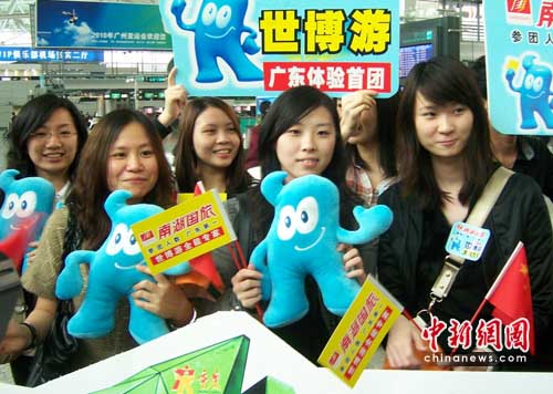 中新網(wǎng)廣州4月19日電 (記者 莫非 通訊員 林月明)4月19日中午,白云機場國內(nèi)出發(fā)廳人氣爆棚,數(shù)十名廣東游客首嘗世博游“頭啖湯”,成為廣東進(jìn)入世博會游覽的第一批游客。