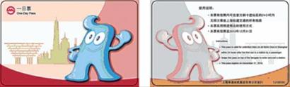 記者看到,“一日票”的材質(zhì)、大小與普通單程票一樣,而票面為世博吉祥物海寶。據(jù)運(yùn)營管理方介紹,“一日票”使用方式與公共交通卡相同,為“照進(jìn)照出”,出站不予回收,可留作紀(jì)念。乘客使用自首次在進(jìn)站檢票機(jī)上使用開始計(jì)算,“一日票”自出售當(dāng)日起10日內(nèi)使用有效,截止使用日期為2010年12月31日。