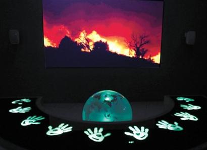 從“希臘的一天”中,游客看到了城市生活的繁忙與樂趣,也發(fā)現(xiàn)城市面臨的挑戰(zhàn)與難題。就像在“生態(tài)”那一章中:當5位游客同時把雙手按在互動桌上時,屏幕上觸目驚心的環(huán)境污染立即消失,取而代之的是希臘為應(yīng)對挑戰(zhàn)而做的努力,如臨海而建的風能發(fā)電場、居民住宅上的太陽能屋頂?shù)。小小的“互動”告訴我們:生態(tài)城市僅僅依靠一個人的努力是不夠的,同心協(xié)力,才會有“更好的生活”。(劉穎)