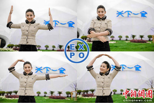 中新網(wǎng)5月11日電 作為“世博手勢(shì)形象大使”,同時(shí)也是上海女孩,黃奕日前來(lái)到世博館“天下一家”未來(lái)館門(mén)口,拍攝一組手勢(shì)大片,身體力行教大家如何演繹EXPO的含義。