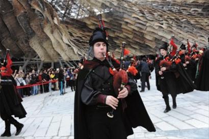 昨天(17日)下午,50位穿著十八世紀(jì)傳統(tǒng)服裝的風(fēng)笛手在西班牙國家館的廣場(chǎng)上演奏傳統(tǒng)音樂,開啟了世博會(huì)西班牙國家館加里西亞周的活動(dòng)。
