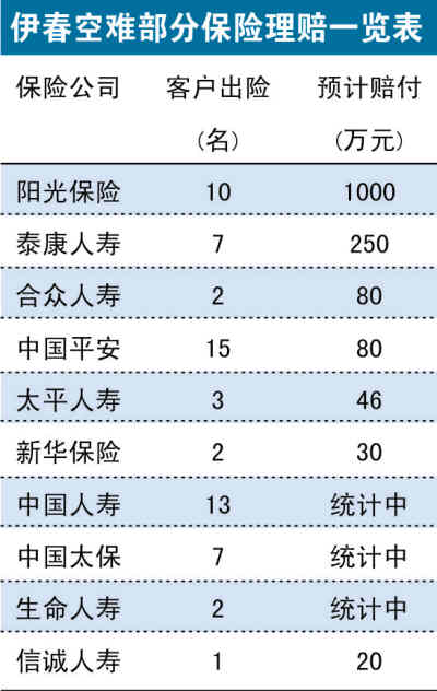 根據(jù)中國保監(jiān)會(huì)發(fā)布的公告,經(jīng)初步確認(rèn),遇難人員中有27人在14家保險(xiǎn)公司投保了人身險(xiǎn),預(yù)計(jì)賠付1487萬元。其中,15人投保航意險(xiǎn),保額700萬元;12人投保意外傷害保險(xiǎn),保額647萬元;16人投保其他壽險(xiǎn)產(chǎn)品,保額140萬元。目前,排查工作還在進(jìn)行中。
