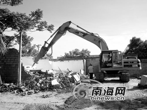 至今日止,鎮(zhèn)海村11宗違法建筑中,已有6戶自行拆除。根據(jù)?谑械慕y(tǒng)一拆違工作部署,秀英區(qū)今日對鎮(zhèn)海村的5宗違法建筑采取了強制拆除行動。