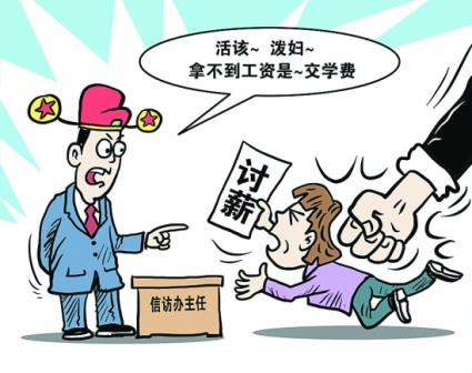 如果說上述還是以最大的善意來揣測葉主任的“難處”,那么,他拍桌子罵女工人是“潑婦”,說“恨不得把你拉走”,如此兇相畢露,他說的“活該”顯然還有另一句潛臺(tái)詞:“打得好!不打不知天高地厚,不打不長見識(shí),打了你你就會(huì)學(xué)乖點(diǎn)!彼合铝藴厍槊}脈的面紗,代表權(quán)力揮起了打壓的大棒,不再顧及信訪辦是衡量政府群眾基礎(chǔ)的“晴雨表”。相反,他想制造“狂風(fēng)暴雨”來威懾討薪的工人。聯(lián)系不久前曝出的被稱為“咆哮哥”的公務(wù)員的作風(fēng),葉主任顯然有過之而無不及,因?yàn)椤芭叵纭敝皇桥叵~主任不只咆哮,還語帶威脅。
