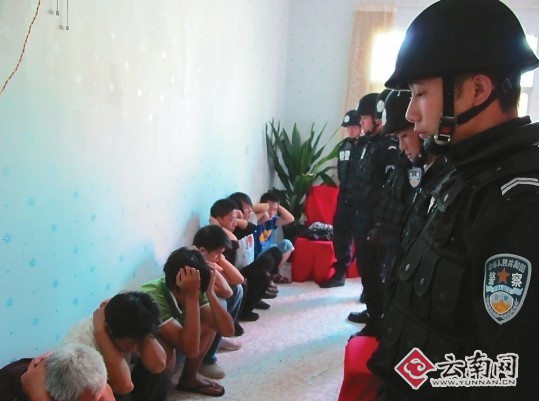 前晚11點(diǎn)左右,昆明市西園路上出現(xiàn)了一條長長的警車隊(duì)伍,車上除民警外,還有91名垂頭喪氣的“乘客”。幾個(gè)小時(shí)前,正在晉寧縣晉城鎮(zhèn)參于賭博的他們,被突然出現(xiàn)的民警逮了個(gè)正著。
