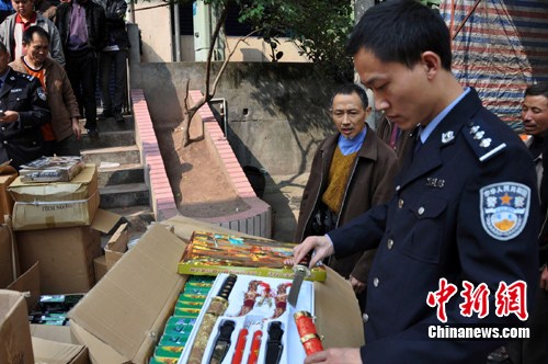 據(jù)通報,11月3日,重慶云陽縣警方接到群眾舉報稱,云陽新城銀海綜合批發(fā)市場內(nèi)發(fā)現(xiàn)仿真槍銷售點(diǎn)。警方迅速前往批發(fā)市場突擊搜查,在一門市店面內(nèi)發(fā)現(xiàn)7支仿真槍,同時,在門市地下倉庫發(fā)現(xiàn)大量的仿AK47、仿64式、仿77式仿真槍,以及大量摔炮、塑料子彈等。