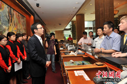 希爾頓重慶總經(jīng)理冀宏飛向檢查驗(yàn)收組介紹說(shuō),在被警方停業(yè)整頓后,重慶希爾頓酒店對(duì)酒店高層、主管和員工進(jìn)行了培訓(xùn),集中學(xué)習(xí)政府和警方相關(guān)的法律法規(guī)。來(lái)自希爾頓(中國(guó))上?偛康膬擅0膊扛吖芙裉煲矊⒌诌_(dá)重慶,對(duì)重慶希爾頓酒店的安保人員進(jìn)行培訓(xùn)和重組。