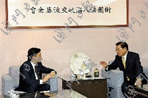譚俊榮二十四日下午在臺北禮節(jié)性拜會;鶗麻L江丙坤,受到熱情接待。雙方深入交換了深化澳臺關(guān)系發(fā)展,促進(jìn)兩地文化、觀光、旅游、經(jīng)濟(jì)等交流的意見。江丙坤明確表示,支持特區(qū)政府推動澳臺關(guān)系發(fā)展。愿意發(fā)揮;鶗淖饔煤陀绊懥,協(xié)助特區(qū)政府與臺灣有關(guān)方面磋商在臺設(shè)立辦事處及澳門高校學(xué)歷認(rèn)可等事宜。