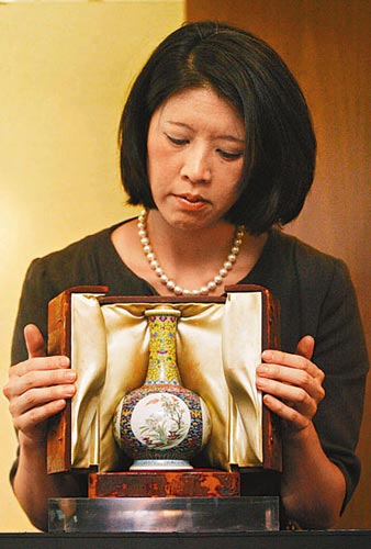 蘇富比中國及東南亞區(qū)副董事沈恩文表示,琺瑯彩搥瓶專為皇室而造,當時產(chǎn)量僅有數(shù)百個,現(xiàn)時大部分收藏于北京故宮博物館及臺北故宮博物館,流傳于民間,由私人收藏是很罕見。他說,今次拍賣會有另一個清乾隆制琺瑯彩搥瓶,繪畫的四季花卉品類與焦點珍品相同,構(gòu)圖則有差異,但因為曾作修補,非完好無缺,故估價較低,約800萬至1000萬港元。