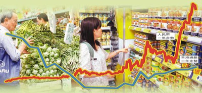 經(jīng)營菜檔的陳先生表示,香港的蔬菜90%由內(nèi)地入口,人民幣不斷升值,加上內(nèi)地通脹升溫,令最近菜價(jià)節(jié)節(jié)上升,“菜心由以前每斤5、6元漲到現(xiàn)在12、13元;每斤紅豆由6元加到14元;芽菜、豆腐貴了1倍,連最平價(jià)的椰菜,也由每斤3元升到6元!”他表示,小商販面對港元貶值,唯有無奈地將成本加幅轉(zhuǎn)嫁予消費(fèi)者,并估計(jì)菜價(jià)短期內(nèi)只會(huì)有升無跌。