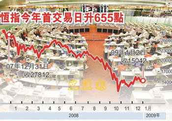 中新網(wǎng)1月5日電 據(jù)香港《文匯報(bào)》報(bào)道,溫家寶總理在元旦日跟大家打氣,中央再推“雙十規(guī)劃”促進(jìn)經(jīng)濟(jì),受惠股份如中資金融股、內(nèi)需股、汽車股及家電股均被市場看高一線,加上受3G發(fā)牌刺激的電訊股,及“松綁”的內(nèi)房股,預(yù)計(jì)5日復(fù)市的A股及港股將受惠利好消息而向好。