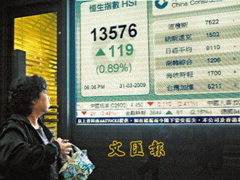 中新網(wǎng)4月1日電 據(jù)香港《文匯報(bào)》報(bào)道,3月31日是港股今年首季最后一個(gè)交易日,大市收升119點(diǎn)報(bào)13576點(diǎn),但首季計(jì)跌達(dá)5.6%,或811.46點(diǎn),跌幅在亞太區(qū)排第3。大市市值蒸發(fā)約2740億元,余下約10萬(wàn)億元。分析員指出,大市3月份走勢(shì)有好轉(zhuǎn)跡象,但在1.4萬(wàn)點(diǎn)見(jiàn)阻力,料第二季仍為波動(dòng)市,將在1.3萬(wàn)-1.4萬(wàn)點(diǎn)上下。