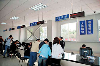 四月一日,深圳居民擴(kuò)大個(gè)人游香港試點(diǎn)啟動(dòng),同時(shí)該市公安局出入境辦證大廳啟用。 中國(guó)公安部決定,自2009年4月1日開始實(shí)施為深圳戶籍居民辦理一年多次往返香港個(gè)人旅游簽注,新政策將惠及除國(guó)家登機(jī)備案工作人員之外的二百二十多萬(wàn)居民。 中新社發(fā) 陳文 攝