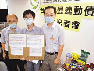 臺(tái)灣苦主表示,這款名為“連動(dòng)債”的雷曼結(jié)構(gòu)性投資產(chǎn)品,由香港銀行及證券商,經(jīng)當(dāng)?shù)胤中谢蛑薪槿艘肱_(tái)灣。但買(mǎi)賣(mài)合約訂明,產(chǎn)品受香港法律約束,投資者在臺(tái)灣投訴無(wú)門(mén),即使獲賠償也僅能取回15%至20%本金,比香港迷債投資者爭(zhēng)取到相當(dāng)于60%本金的賠償,臺(tái)灣苦主“苦上加苦”,故赴港尋求協(xié)助。