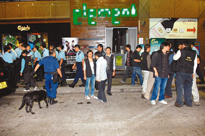 其間,有組織罪案及三合會(huì)調(diào)查科聯(lián)同反黑組及機(jī)動(dòng)部隊(duì)共50多人,帶同一頭緝毒犬,于昨凌晨2時(shí)30分,掩至尖沙咀寶勒巷3號(hào)至7號(hào)萬(wàn)事昌商場(chǎng),逐一突擊搜查上址多間娛樂(lè)場(chǎng)所;另外又到赫德道一帶多間夜店進(jìn)行查牌,并向可疑人士查閱身份證明文件,行動(dòng)持續(xù)10小時(shí)。