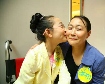 中新網(wǎng)5月11日電 據(jù)香港《大公報》報道,汶川大地震毀掉很多人民的理想,奪去他們的肢體,更毀掉不少幸福家庭。來自四川的“芭蕾女孩”李月,10日與母親來香港慶祝她們?yōu)暮蟮谝粋母親節(jié)。失去一條腿的李月表示,沒有準(zhǔn)備什么禮物,因?yàn)楹煤蒙罹褪撬徒o媽媽最好的禮物。
