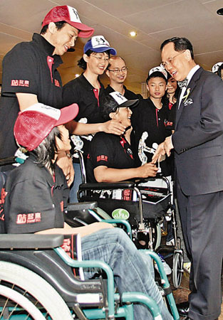中新網(wǎng)5月13日電 據(jù)香港《文匯報》報道,在地動山搖后的一片頹垣敗瓦中,他們縱使傷痕累累,依舊堅強地“站起來”,活出生命的精彩。在參觀“蜀港同心 大愛無疆──汶川大地震一周年紀(jì)念圖片展”后,香港特首曾蔭權(quán)伉儷、中聯(lián)辦主任高祀仁與在地震中因肢體損傷而截肢的多名傷員逐一握手與交談,簡單的“打氣”鼓勵。