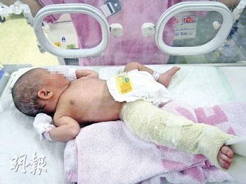 中新網(wǎng)9月23日電 據(jù)香港《明報(bào)》報(bào)道,一名來自佛山的婦人日前到香港浸會醫(yī)院剖腹生下女嬰,父母稱女嬰出生時(shí)正常且“撐手撐腳”,但3小時(shí)后醫(yī)生才告知女嬰右腿骨折,父母懷疑是醫(yī)護(hù)人員疏忽照顧所致,已報(bào)警求助。