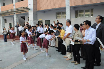 隨后,議員前往涪江路小學(xué)訪問,該校在完成重建后將成為一所完全小學(xué)。香港特區(qū)共提供超過1500萬元,以協(xié)助這所小學(xué)進(jìn)行重建。在訪問期間,該校學(xué)生集體創(chuàng)作及繪畫了一幅圖畫送給議員,以表達(dá)對(duì)香港市民的謝意。曾鈺成在發(fā)言時(shí)表示,很高興看到同學(xué)們臉上的笑容,并鼓勵(lì)他們努力讀書。在離開前,曾鈺成以書法題詞,表達(dá)自己對(duì)學(xué)生的支持。