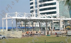 為配合大橋開工專門興建的監(jiān)管躉船輔助設(shè)施及微波傳輸平臺,2日已在拱北灣北側(cè)水域建成,該平臺將擔(dān)負(fù)大橋建設(shè)水上交通安全監(jiān)管無線微波傳送工作。