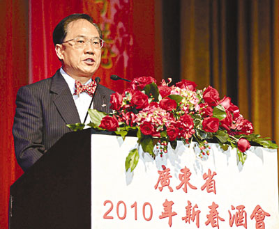 曾蔭權(quán)期望,在新的一年,粵港兩地要繼續(xù)凝聚社會共識,透過優(yōu)勢互補,加快香港在經(jīng)濟上與珠三角的配合。雙方的共同目標是結(jié)合廣東省“先行先試”和香港“一國兩制”的優(yōu)勢,配合國家“優(yōu)化第二產(chǎn)業(yè),加快第三產(chǎn)業(yè)發(fā)展”的政策,為國家和香港經(jīng)濟的長遠發(fā)展作新貢獻。他也祝愿,廣東于今年11月舉辦的第16屆亞運會圓滿成功。