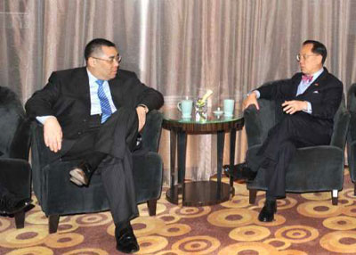 中新網(wǎng)3月4日電 據(jù)香港中通社報(bào)道,香港特區(qū)行政長(zhǎng)官曾蔭權(quán)及澳門特區(qū)行政長(zhǎng)官崔世安3日下午抵達(dá)北京后,兩人共進(jìn)晚餐。曾蔭權(quán)及崔世安將列席5日全國(guó)人大會(huì)議開(kāi)幕式。