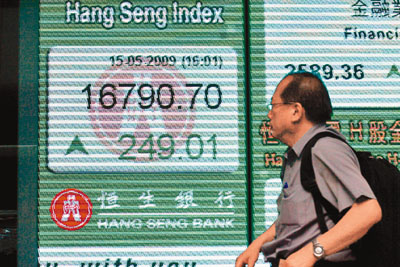 金利豐證券研究部董事黃德幾表示,近日受到熱錢流入和內(nèi)地經(jīng)濟(jì)數(shù)據(jù)理想等因素令港股持續(xù)向上,但由于香港首季GDP負(fù)增長7.8%,遠(yuǎn)遜市場預(yù)期,加上香港出現(xiàn)第三個H1N1確診個案,港股短期或出現(xiàn)回吐壓力,恒指18日料低開200-300點,本周在16000點有支持,被過分炒上的航運股、內(nèi)房股等,短期或現(xiàn)回吐壓力。港股的成交上周呈萎縮,但3次都未見破之前的重要壓力位,料恒指在15800至16000點有很大的阻力。